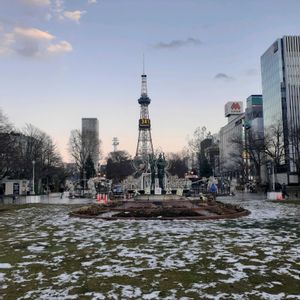 今日の札幌。大通公園。 ヒトケタでもプラス気温だと、暖かく感じます。夜になると、イルミネーションの花が咲きます😅 🏷️雲仲間