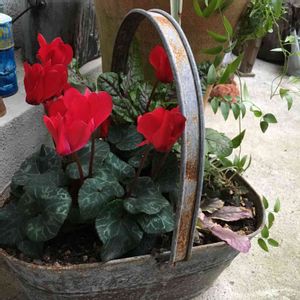 見切り品コーナーからお連れしたシクラメンですが、ステキな色で玄関を明るくしてくれてます♪