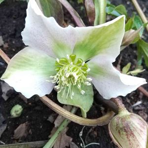 今日は暖かくてお庭作業も捗りました。 さて、3年程前に、ブラックダブルのベビー苗という事で、購入したクリスマスローズに蕾が付いて、やっと花が見れると思って、毎日楽しみにしていました。 いざ、咲いてみるとこの色です(-_-;) ブラックやないやん!