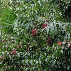 ゴンズイの実がたくさんなっていました。 遠くから見ると赤い花が咲いているように見えました。