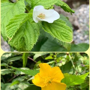 実家の庭に シロヤマブキが咲いてた☺️ 同じ日 裏の山道に行ったら ヤマブキが咲いてた😊