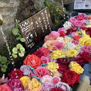 神代植物公園では薔薇🌹が綺麗に咲いてます 隣りの深大寺の花手水も薔薇です