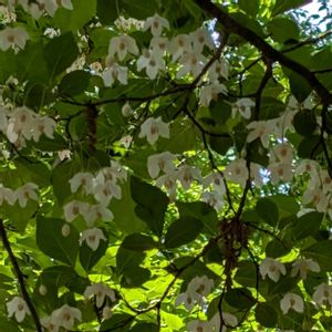 昨日深大寺へ行きました。 元三大師の特別開帳があり拝観してきました。 その際自転車を神代植物公園 の深大寺門に駐輪しました。 その付近に大きな木があり、 白い花がたくさん咲いていました。 調べてみたらエゴノキらしいです。 知りませんでしたが、見事な感じでした。