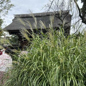 おはようございます♪ ♡今日のお花♡ 🎑🌾ススキ🌾🎑 イネ科ススキ属 ①②昨日の神代植物公園の隣りの深大寺の山門のススキ🌾 ③深大寺の花手水 ④三鷹駅前でお祭り🪅の神輿に遭遇、半被の「鷹」が粋ですね