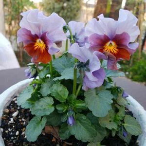 ビオラ‘ヌーベルヴァーグ’ 先日森の妖精アンティークと一緒に寄せ植えしたビオラ‘華あられ’がナメクジの食害で枯れてしまったので、慌てて1苗買ってきました。 当初は淡い色のビオラを探していたのですが、何年ぶりかに遭遇した絞り咲きを外す訳が無く(笑) でも、自分の中では既に完成している寄せ植えに新たな色合いの植物を加えると、どういう雰囲気に変わるのかドキドキします💦 因みに、ナメクジは鉢底に丸々としたものを発見したので捕殺しましたが、シクラメンに新たな這った跡があるのでココヤシファイバーの中にもう1匹潜んでいそうです。 …今年はシャクトリムシも多かったけど、ナメクジも多いなぁ…(›´ω`‹ )