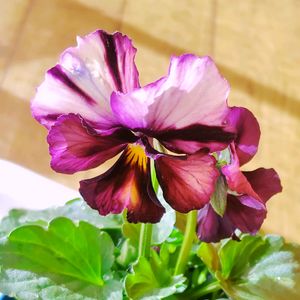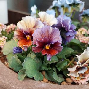 パープルからブラウン 咲き始めより 花の終わりまで しだいに色変わりします。 春には鉢から こぼれんばかりに 咲いてくれるでしょう。 この寒い時期の花は とても長持ちします。 そしてなんといっても花色 寒気にさらされて くっきりとクリアーで深い色合い ふわふわとした春の頃の花とは 違う趣です。花数こそ春のそれには かなわないですが それもこの時期ならでは ひとつひとつの花色の移り変わりを じっくりと堪能できます。 アンティークカラーのビオラに 定番のスイートアリッサム 色はアンティークなピーチ あたたかい春の訪れを待ちわびながら 今 この時の花を楽しむ 冬とは そんな贅沢な時節 大型の寒波がやってくるとか… お気をつけて 温かくしてお過ごしを 今日1日 お疲れさまでした。
