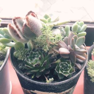 8月30日 雨☔️ モフモフさん集合😅 スカスカした 多肉棚にお迎えしました🤗 他にも熊童子にスカピゲラも狩って 帰りましたよ少し棚も華やいだかな😊