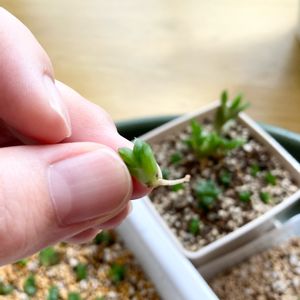 ハオルチアの小さい小さい子株ちゃんに根っこが出ました〜🥹 小さくてもがんばって生きてる🌱✨