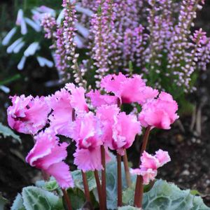 フリフリのシクラメンが可愛らしい💕 ところで、後ろの小さなピンクのお花、お名前何でしょう? この写真じゃちょっとわかりづらいかな。 数名の方にカルーナと教えていただきました。 ありがとうございます💖