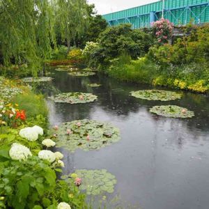 雨の睡蓮の池