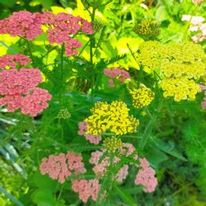 「食と緑の空中庭園」 セイヨウノコギリソウのお花、黄色、ピンク、薄ピンクの3色咲いていました💕緑も綺麗🍀✨
