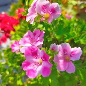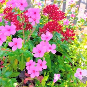 「食と緑の空中庭園」 ピンクのニチニチソウと赤いペンタスのLovelyな組み合わせ😍かわいいなぁ💖