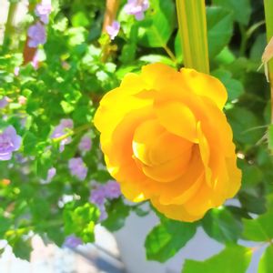 「食と緑の空中庭園」 黄色いバラがキレイでした💛 後ろはカリブラコア?わかりません😅🙏🏻コントラストがgood👌🏻💖