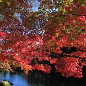 青空映える水鏡😊 モミジが紅く染まるとどうなるだろう😊