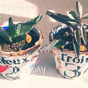 こんにちは! 今日は暖かくて春が来た〜💓 ずいぶん前に作ったリメ鉢1番がずーっと空いててやっと植えてあげられました💕 gsのセンパイがもってていいなと思ってた子持ち蓮華。暴れてますが緑がスゴくキレイで好みだわ〜😍💞