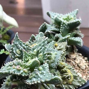 ■Faucaria フォーカリア属 多分ですが… (左側)四海波 (右側)怒濤 ~🌁冬型🌁~ 四海波は昨夏からのお付き合い 怒濤は今春からの新人さん✴ 今考えると昨夏に冬型さんを連れてきて植え替え水やりって、 よく生きてたな…って感じです そして冬型の意味を完全に誤解していた私は昨冬にマイナス屋外に放置、週一の水やりをしてました😅 ホントにゴメン😢💨💨 今夏は午前中のみ明るい半日陰 でジーっと耐えて頂きました 風のある日を狙って霧吹きで 多めにシュッシュッって感じで 九月半ばから週一でしっかりと 水やりしてます(^-^ゞ 一気に大きくなった気がします 蒸れに弱そうなので植物と土が 接触しないように富士砂を敷いちゃってます😆 一年前から富士砂で問題ないので富士砂を増やしていこうと 検討中です エイリアンとか呼ばれてますが 確かにキモカワさんの代表ですね😁💧 時期なのでハロウィン🎃商品に ちゃっかり陳列されてるのを 見た時にはちょっと…でした👌