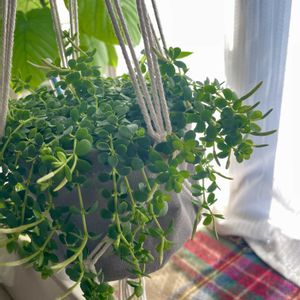 夏にお迎えしたペペロミアデピーナちゃん。 窓辺に吊るして、たくさんお花?が咲いてくれてる。 近くに行くと控えめにいい香りを出してくれてとても可愛い🥰