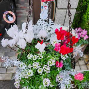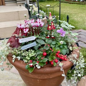 こんにちは😄 今日は良いお天気になりました☀️ シクラメンと葉牡丹で寄せ植えを作りました😄 黒竜はお庭で増えたとこから一部抜いて🖤白妙菊は夏越したプランターから挿し木😄 そんなに入れ物大きくないから ちょっといられるものがあると便利かも😄 昨日植え付けしたかった待機苗、 休みの日に限って雨とかしょぼん🥲 ぼちぼち植えまーす😄 今日も良い一日をお過ごしくださいね🍀