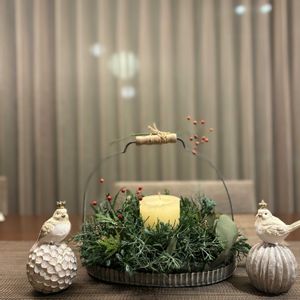 ①今日の花遊び教室は、クリスマスのアレンジにしました。 ②白とシルバーをメインにホワイトクリスマスのイメージです。 ③3つ並べると賑やかに。でも境目が分からない😂 ④今朝、お花の準備したところ。 昨日、ローズマリーの剪定をする花友から、枝をたくさん頂けて使いたい放題でした。ありがたや〜🙏 ⑤暗くなってくると、ミニキャンドル(LED)🕯️をonにして、1人でクリスマス気分です🤭