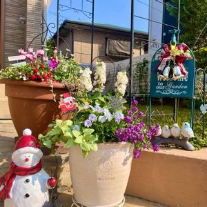 もう12月ですねꕀ⋆ クリスマスですねꕀ⋆.*🎁🎅🌟🎄 1⃣2️⃣3️⃣先月から飾ってる クリスマス風寄せ植え🎄.*🎁🎅🌟 4️⃣イルミネーションも11/28から 点灯始めました✨