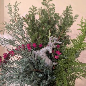 クリスマスのアレンジ作りました 庭のコニファーやユーカリで今年も作りました。 これは職場に飾る用です。