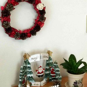 クリスマスリース 作り直しました。白の綿は、もう売って なかったのでデコレーションポプリと 白い玉を入れてみました。 前より良くなったみたい👍
