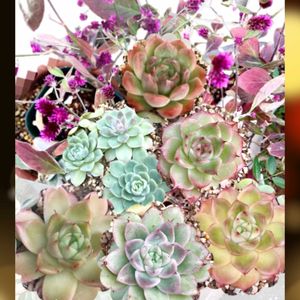 いつもご覧頂きありがとう ございます😆🙇♀️ 🎄庭のお花さん多肉さん 達をクリスマス アレンジ、コラージュ してみました 🎄☆ホワイトマザーズディ ☆ジャスミン茉莉花 ☆千日紅 千紅花火 🎄☆紫バラ交配、 ☆名無しエケベリア