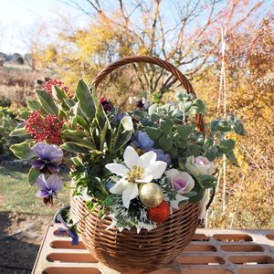 籠にお花をポンポンポン…🥰 玄関を少しだけ明るく❣️ にっこり…☺️ このままお正月には少しだけ入れ替える予定…╰(*´︶`*)╯♡ 葉牡丹がただいま待機中🎍 それ以前に本当はお庭の手入れをしなくてはいけないけれど…💦 先に元気パワー💪
