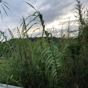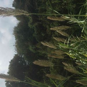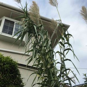 ダンチク 隣には、まだ背の低い斑入りダンチクが生えてましたが、こっちはとんでもなく大きい…😳 アシのおばけ👻まるで竹ぼうきみたい🙄