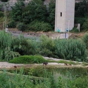 家の前を流れる小川で猪🐗の親子を見つけました。 ロックダウン中に、この荒れ果てた河原に引っ越してきて、住み着いてしまった猪です。 ここは普段は野鳥達の憩いの場でもあり、野草が生い茂り、昆虫や小動物もたくさんいるので、彼らにとっては食べ物に困らない場所なのでしょう。 蛇🐍やネズミ🐀も多いので、私は河原に足を踏み入れたことはないですが、脇の車道を犬🐩と歩いていつも眺めています。 野草は、6/22に投稿したヒロハヒルガオや、野生のキイチゴ(ブラックベリー)が群生しています。