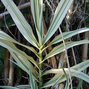 おはようございます。 昨日は雨が上がったと思ったら、猛烈な暑さで参りました。 近くの公園です。 斑入りのダンチクが大きくなりました。 暖かな海岸近くに自生する、イネ科の多年草です。 茎は太くて、竹のようになります。 花はヨシに似た40cm程の花房が茎の先端に出ます。 屋久島ではこれをダチクと呼ぶそうです。 竹のようなのに、竹の子も取れず、茎も弱い、役に立たない竹の意味だそうです。 しかし、この葉っぱを押し寿司を包むのに利用する所もあるようです。🤔 大きく育つので、潮風を防ぐかもしれません。^_^ 最近では、茎から作ったチップをバイオマス原料として利用することも研究されているそうです。👍 サトウキビはこのダンチクの仲間のようです。😊
