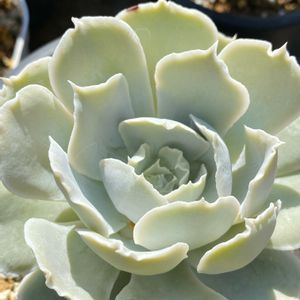 デカベリアちゃん✨ 真ん中の方が流氷みたいな色でメッチャ綺麗🤤 増やしたいけど萎れた葉じゃ芽が出ないし新鮮な葉をバラすのは気が引けて出来ない🤣 首が伸びちゃったら✂️だな😁