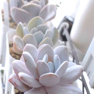 こんばんは🌟 疲れとイライラでまたしてもメンタルぼろぼろですが、夕方にハーブさんとお会いできて少しだけ元気になりました🎶 ああ、静かな世界に行きたいナァ… 多肉愛でたり編み物したり、小説読んだり映画観たり、好きな音楽いっぱい聴いて邪魔をされずにゆっくりしたい(っ˘ω˘c ) まったりpicは 「言葉に出来ない」 可愛くて綺麗で、丸まって白い薔薇みたいなルンニョニー…ルンヨニーさんです(笑) 本当になんて言ったらいいのか分からないくらい綺麗で可愛いんです😍💕 このコはお水切れるとこうやって丸まって教えてくれるので、本当に分かりやすいです😊 たっぷりお水をあげたので、明日には開いているかな🙌 開いたところも可愛くて大好きです(⌯˃̶᷄ ⁻̫ ˂̶᷄⌯)💖