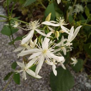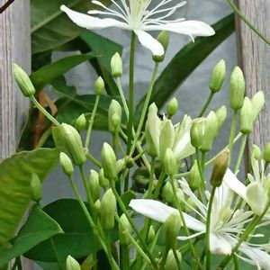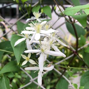 こんにちは😃 三年目にして初めて仙人草咲きました😃 と、言うのも…知り合いの社長さん夫婦が、仙人草のツルを、雑草のツルだと思い抜いていってしまうのです😭 良かれと思いしているとは思いますが、2年も同じ事されたので… 今年初めて、お花が見れました🌸 嬉しいなぁ😊