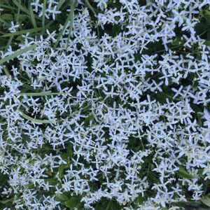 おはようございます☀ 大きな木に絡まって、蔓性の枝からいっぱいの白いお花が咲いてます。 上の方は蔓の先になるのでしょうか?まだ蕾です。 お名前がわかりません😱 教えて頂けると嬉しいです😊 ウツギさんにセンニンソウと教えていただきました。ありがとうございます😊