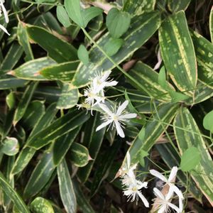 title: 今さら夏の思い出 センニンソウ 1/2 コガマの池の周りは、大まかに分けると、コンクリート敷の通路ゾーンと、中低木の雑木林と、人工の湿地帯?。 それらに、伸び放題の草藪が入り混じっていて… 虫も増え放題😱😁🐛🕷🦋🦗🐞 そんなカオス空間(笑)に、一服の清涼剤のようなセンニンソウ。 これもお初の花🥰 現場の状況を、ご説明しますので、次のページをご覧ください🔍