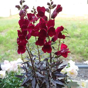 *キンギョソウ ブラックプリンス 秋に植えたキンギョソウ咲いてました✨ ←のセントーレアと、→のカモミールがのっぽすぎて埋もれてました🫥いや、ほんとキンギョソウの3倍以上あります💦日も当たらないのでカモミールの量をだいぶ調整しました✂