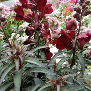 ビロードのような深い赤の♥️キンギョソウ 「キンギョソウ ブラックプリンス」と教えていただきました。 開花期4〜6月となっていますが、四季咲き品種もあるそうです。 歩道に沿って白、黄色、ピンクの金魚草が並んでいます。 真っ直ぐ草丈1メートルくらい。いつも見る金魚草のイメージとは違っています。 葉もダークカラーです。😱 🏷真っ赤な火曜日 🏷あっ火曜日 に参加させていただきます。 オオバコ科 キンギョソウ属 別名: スナップドラゴン 原産地:南ヨーロッパから北アフリカ 花言葉: 赤→「愛」「恋」「情熱」