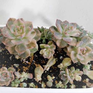 おはようございます😃 今朝は涼しいを通り越して寒いくらいでした😵 いよいよ多肉ちゃんの紅葉が始まりますね✨👍 一昨日のイベントで購入したワンコイン寄せ植えをニトロさんのクリーム鉢にinしてみました💕 ちょっと苗が足りないので多肉棚から✂️した子も使って✨✨ まだ色合いが地味めだけど、白牡丹錦がお気に入りです😊