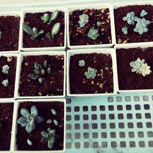 こんにちは!☺️ 今日は暑かったです☀ 27℃まであがりました🌡💦 りなははさんから可愛い種が届きました🎁 ラグラスバニーテールとブルースター🌿💙 種から育てるのがめちゃめちゃ下手っぴな私ですが、頑張って育てます❤️ りなははさんありがとうございます🤗 右側の仔は、白牡丹錦の葉挿しちゃんです💚 この仔って、もしかして錦ちゃんなのに強い?😍 雨ざらしの鉢の空いた場所に置いていたら可愛い錦ちゃんが出てきましたよ🌿 やっぱりチビちゃんでも錦は可愛いですね〜💕🎶 今月も宜しくお願いします🎏🤗