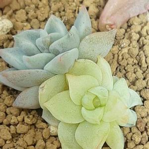 白牡丹錦💕 葉挿しから育てた子(*´∀`)♪ 双子だけど一つは、お化け?もう一つは、先祖返り?