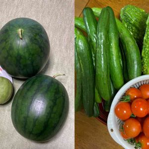 本家さんやご近所さんから 頂いたものばかり😊 黒西瓜に懐かしいまくわうり お仏壇にもお供えしました👏 休みの間楽しめます♡