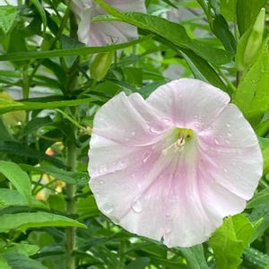 雨降りの中 ヒルガオが咲いています♪ 優しいピンク色💕
