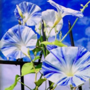 ①暑さのせいか 先祖返りして白や青の花が目立ちます。 紫の絞り柄の朝顔江戸風情もピンクの花が多くて 来年用の種が採れるか心配です。暑さのせいでしょうか ③夕映えが調子を崩して棒になってきました 最後の姿かも ④スマホを横にして見てね。少しは涼しくなった?