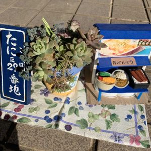 🏷️るる かまぼこ板で繋がる輪 ありがたハッピー♡100均🏷️ ①孫と作ったお弁当屋さん 並んでるお弁当はダイソーさんで ①②③多肉ちゃんの植替えと手直し ④⑤散歩道