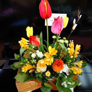 本日のお花✨ チューリップ✨ 主人のバースデーに頼んだアレンジメントを数日後に我が家のチューリップとフリージアで再度生けたものです✨😊✨ 昨年3月のpic です😊