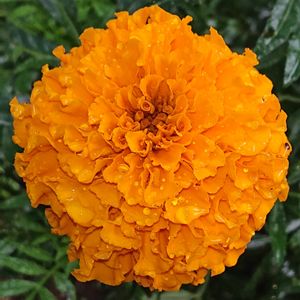 本日のお花✨ マリーゴールド✨ 親戚の方から頂いた苗の中に1本だけあったアフリカンマリーゴールド🎵(^-^)v 雨上がりの大きなマリーゴールドさんです 😊✨😊 先日投稿しました、シリカゲル乾燥のマリーさんはこのお花さんたちです🎵