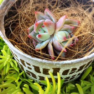 今頃ですが(^^;; キュンキュン乙女倶楽部 寄り添って投稿しま〜す① ツインズの多肉ちゃんが可愛くて、先日ビザールファームさんでお迎えしちゃいました〜♬ 寄り添ってる?よね♡ タグには メルシーと書かれてました✨ フランス語でありがとうだね♡