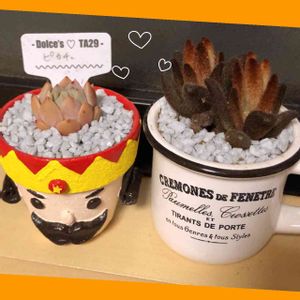 こんばんは😊 今日はいい天気で多肉ごとすーっごくはかどりました👍 おかげで腰も肩も背中も痛い🤣 1月にwsに行って作った寄せ植え。 blancaさんとhahaさんのコラボ鉢💕 なんとでかい5号😋 ちょこっと隙間に家にある多肉さん入れて本日やっと完成😆 blancaさんの作品が大好きでblancaさんシリーズで集めてみました。 普段はリビングに飾ってニンマリしてます😆やー、いいなぁ、リメ鉢❤️ また明日からお仕事頑張れるぞーい👍