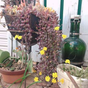 こんにちはー😆😆 こちら、旦那さんの多肉さん👍 寄せ植えなのですが😊 なんなんですか、これは!!!!!😍 このルビネの成長っぷり!!❣️❣️ めちゃくちゃうらやましいんですけど🥺 素敵すぎてちょい嫉妬🤣🤣笑笑 でも元気な姿に私も元気注入された🙌 雨ざらし、日あたりいい場所ですよ😊 こんなにかわいいお花が咲くのね❤️ ロングヘアーの女子みたいに華麗だわ🤣💕💕💕 私もがんばろ〜👍 さて午後からも笑顔でお仕事頑張ります😆